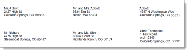 The Mailing Labels: Family report generates one family mailing label for each individual matching your filter criteria. The mailing labels are compatible with the Avery 5160 address label template.