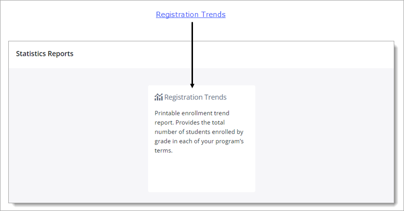 The Statistics Reports page features an enrollment trend report that enables you to view trends in your program's enrollment data. The report is useful for analyzing enrollment trends over time and for viewing growth and attrition rates for specific grades.